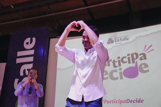Por Agencia De gira por el estado de Oaxaca, donde participó en un foro con estudiantes de la Universidad La Salle de Oaxaca, el candidato